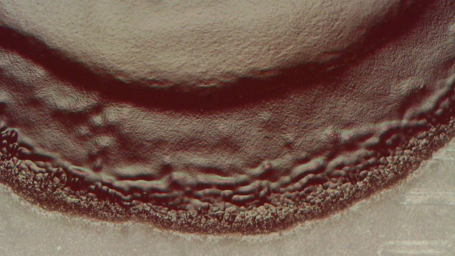 Nach der erfolgten vollständigen Trocknung resultieren diese Anhäufungen in stark ungleichmäßigen Schichtdicken der trockenen Strukturen in den betroffenen Bereichen. Im Allgemeinen ist aber die Gleichmäßigkeit der gedruckten und getrockneten Schicht ein wesentliches Qualitätsmerkmal der funktionalen Schicht. Die auftretenden Abweichungen der Schichtdicken führen häufig zum Ausschluss der Erzeugung der funktionalen Schicht mittels Inkjet-Verfahren. Die Beobachtung der Schichtdickenausbildung während der Trocknungsvorgänge ist deshalb essentiell für ein besseres Verständnis der Phänomene und das letztliche Ziel, möglichst gleichmäßige Schichten im trockenen Zustand zu erzeugen.